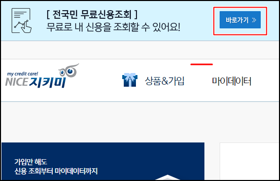 2.상단에 전국민무료신용조회 바로가기 버튼을 클릭하세요!