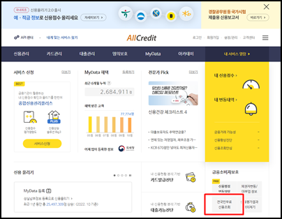 두 사이트는 1년에 3회를 4개월에 한번씩 무료로 조회를 할 수가 있는 전국민무료신용조회 서비스를 제공을 하고 있습니다.